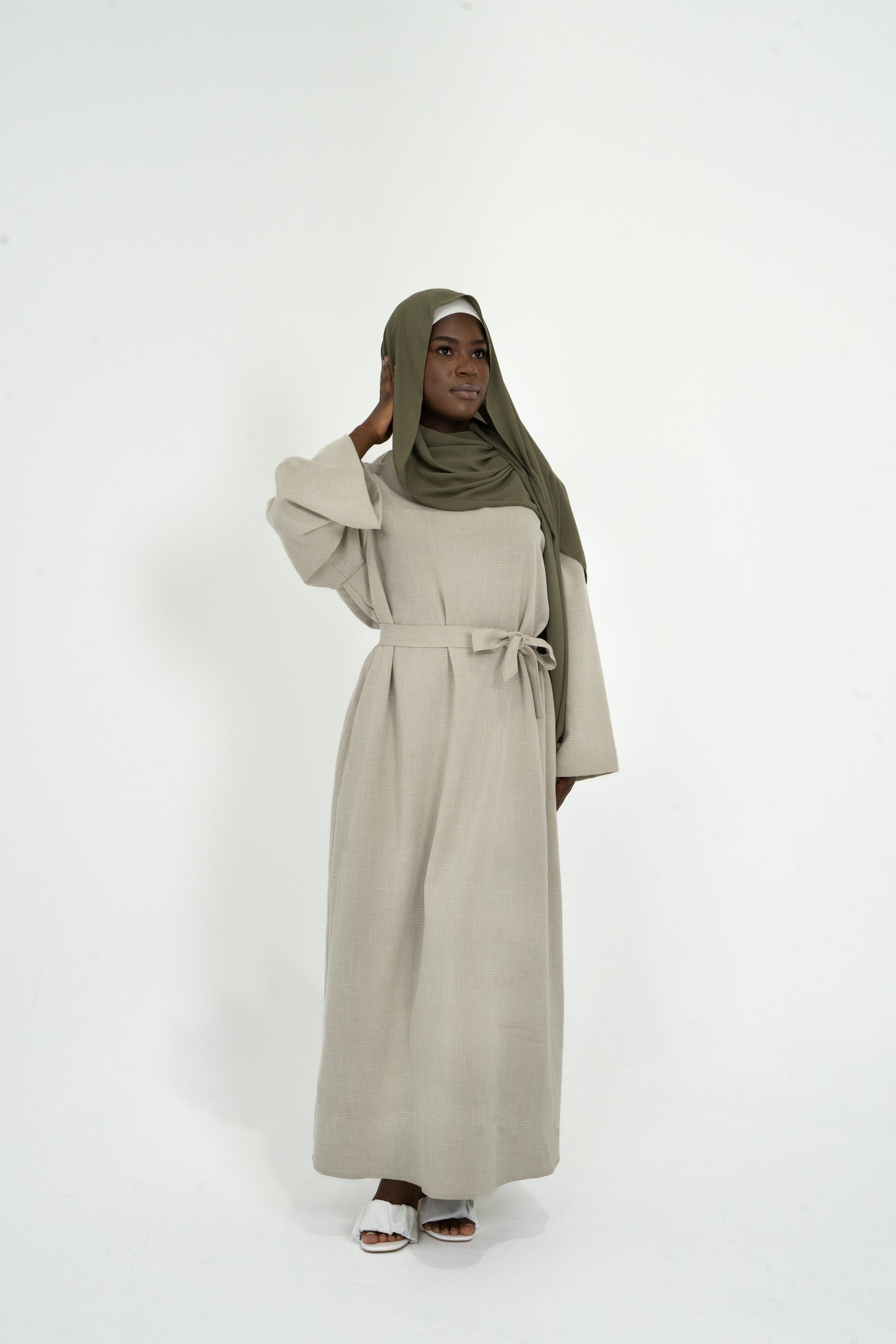 Enhancing the silhouette and offering a customisable fit, our Abaya comes with a belt, allowing you to cinch the waist for a flattering look or to add a touch of sophistication to your ensemble. Whether you prefer a relaxed or tailored fit, this versatile accessory ensures you can style your Abaya to suit your mood and occasion effortlessly.